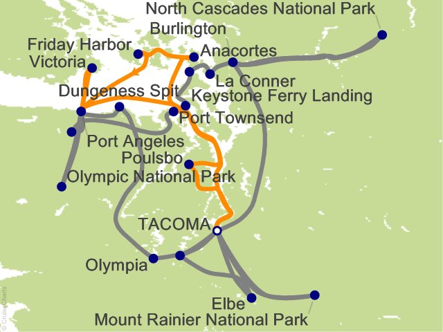 After breakfast at the hotel, you will be taken to your ship in Tacoma to begin your journey along Puget Sound and the San Juan Islands. Enjoy stunning views of Mount Rainier and the historic Thea Foss Waterway. Pass bustling marinas, vintage tugboats, and waterfront parks. Find a comfortable spot on the ship and bask in the beauty that stretches out before you. ...